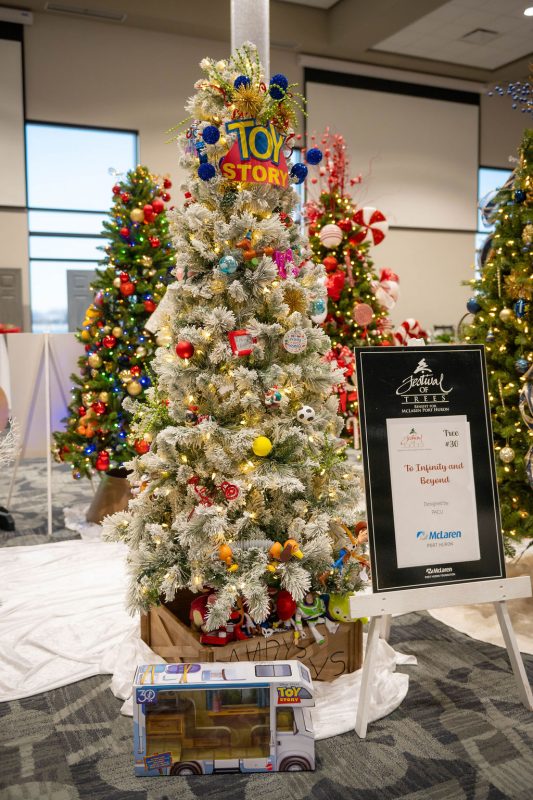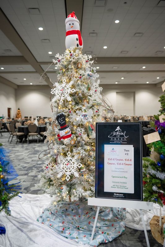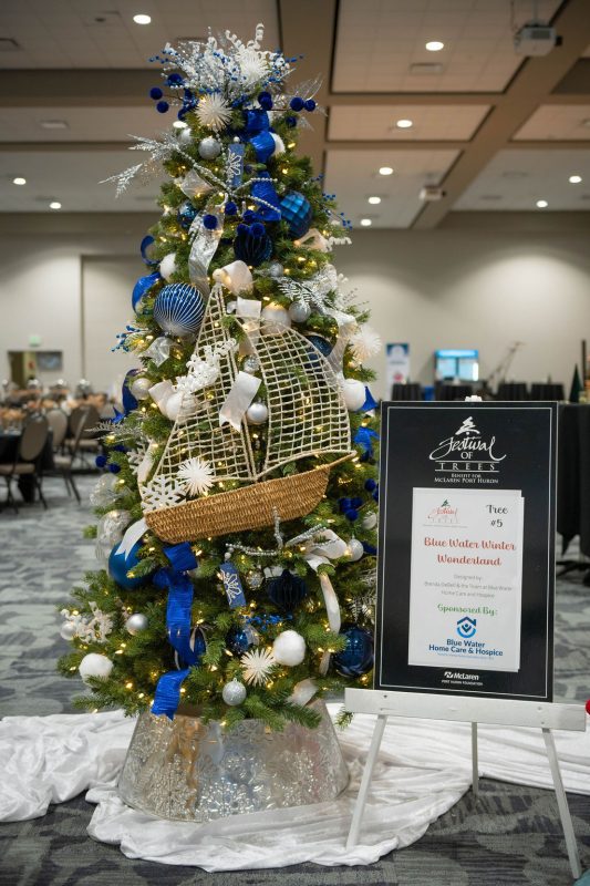 Sponsored by Blue Water Home Care & Hospice, this tree is inspired by a Blue Water Winter Wonderland, the tree is a reflection of the Great Lakes and our Blue Water Community.